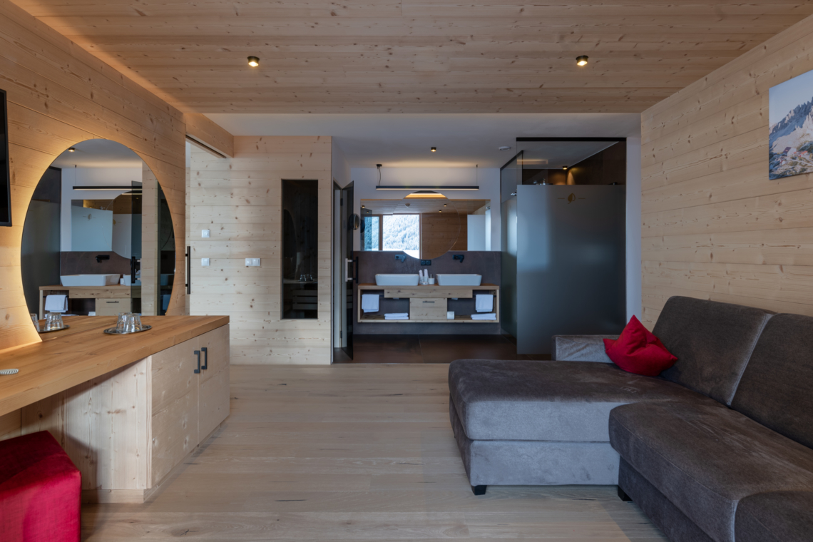 Meet our jacuzzi suite and experience wellness in a new way: Inspiring views of nature are best enjoyed in the whirlpool on the balcony.